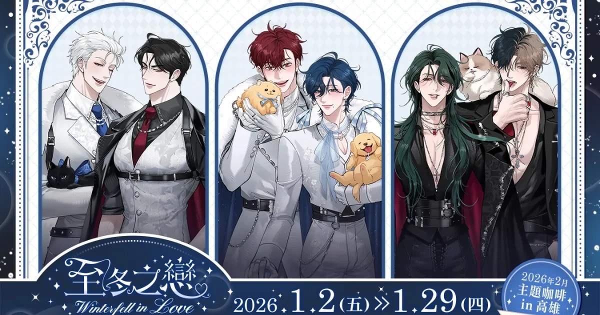台灣人氣 BL 漫畫家桂 Gui 籌備許久的首次個展與主題咖啡廳即將浪漫登場!以桂老師筆下人氣 BL 話題之作《週五失戀聯盟》和《深秋入冬》作為「至冬之戀」個展與咖啡廳主視覺,綻放冬季浪漫戀曲。