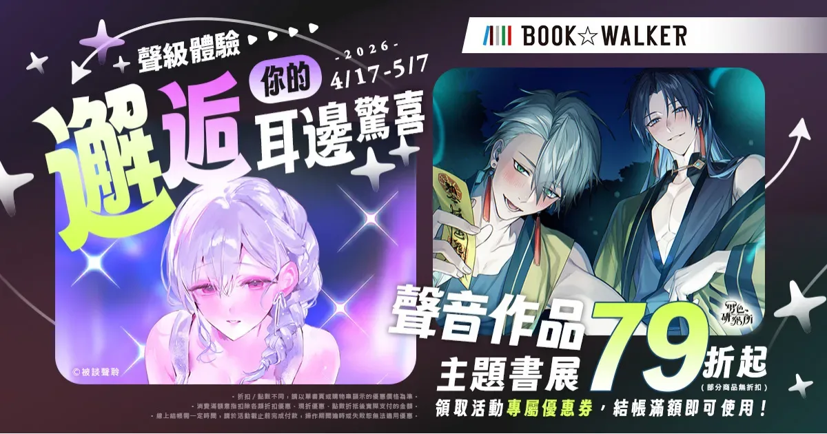 電子書平台 BOOK☆WALKER 推出多項春季閱讀盛典。自 4 月 17 日起,聲音主題書展將帶來聽覺饗宴;而女性向漫畫及輕小說展,則有獨家滿額禮與話題名作。