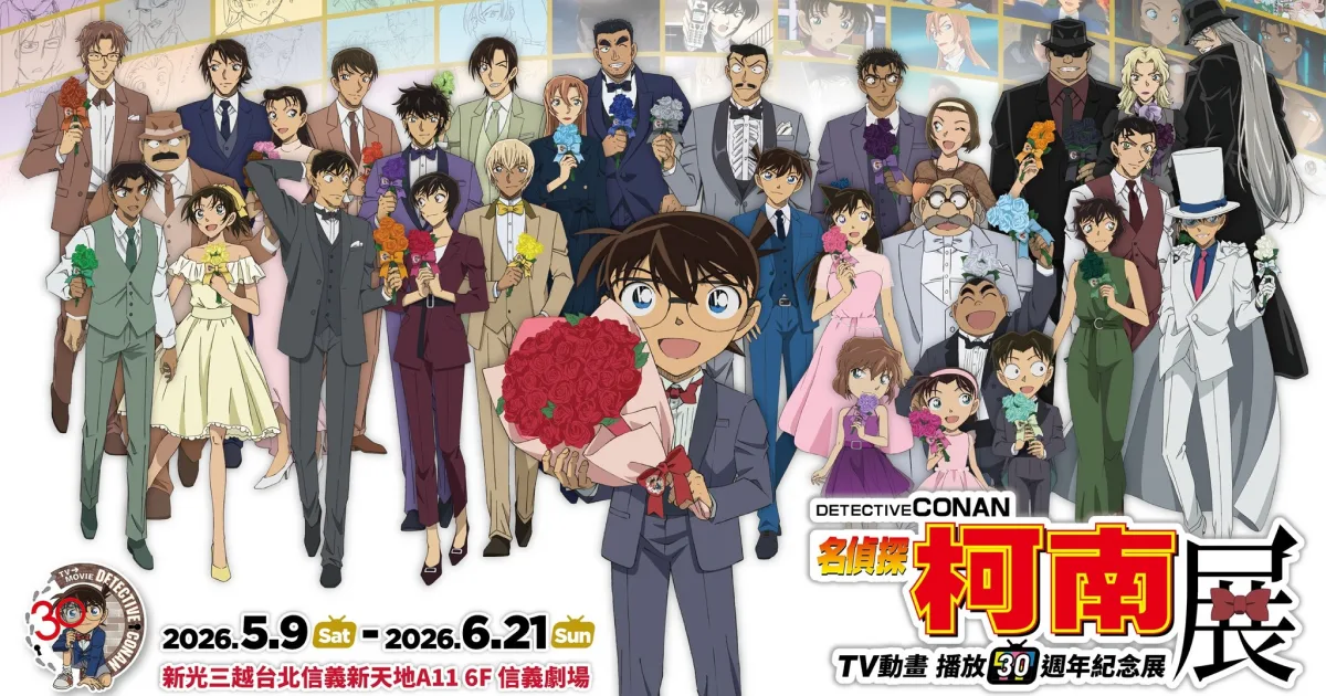 為紀念電視動畫播出 30 週年,《名偵探柯南》推出「TV 動畫播放 30 週年紀念展」,海外首站確定於台北新光三越 A11 登場,預計 5 月開展。