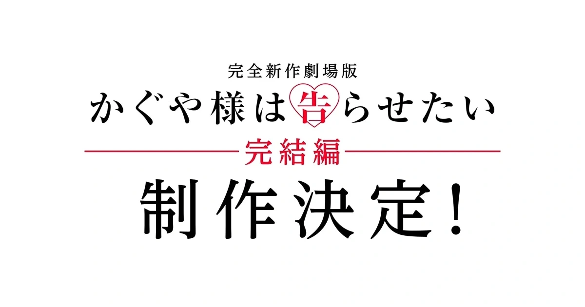 超人氣戀愛喜劇《輝夜姬想讓人告白》動畫系列於 31 日宣布,將推出完全新作劇場版《輝夜姬想讓人告白》完結編。本作並非漫畫劇情改編,而是採用原作者赤坂アカ親自撰寫的原創故事,以全新形式呈現。