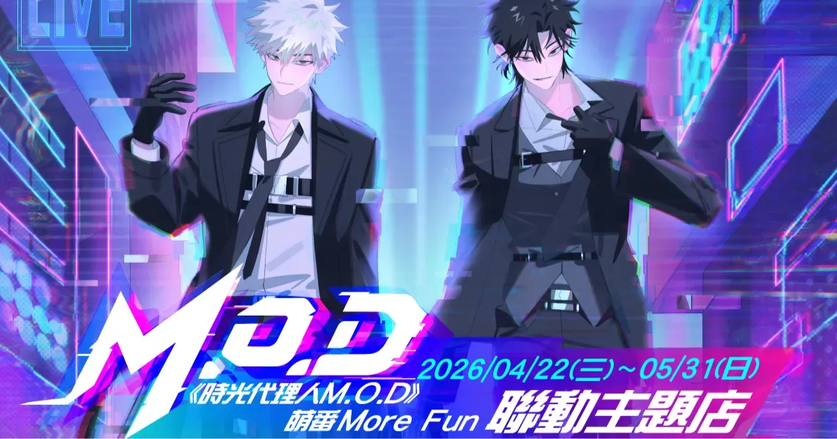 萌番 More Fun 攜手人氣動畫《時光代理人》驚喜宣布將於 4 月 22 日起,於台北 SORA LINK 與高雄魯克思咖啡舉辦《時光代理人 M.O.D》聯動主題店。