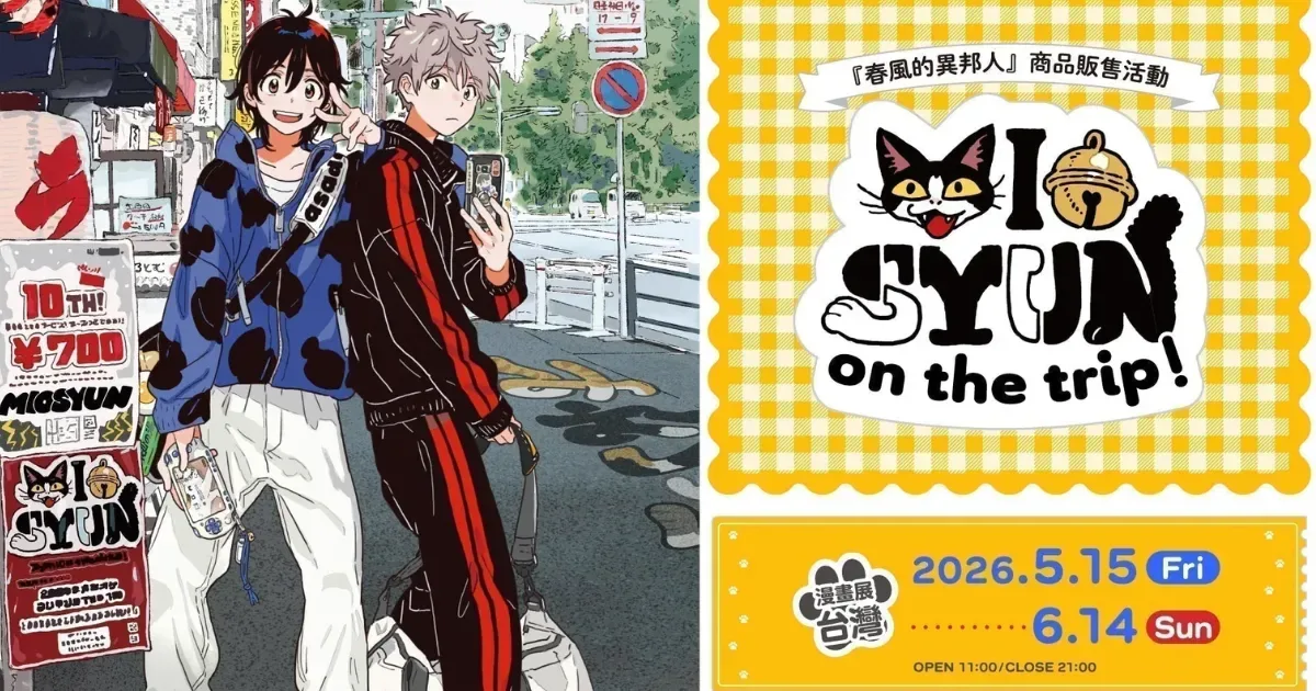 日本漫畫家紀伊カンナ人氣 BL 日漫《春風的異邦人》期間限定店「-MIO SYUN on the trip!-」將於 5 月 15 日起在台北「ふるいち×マンガ展」登場,與實央和駿踏上春意盎然的旅程。