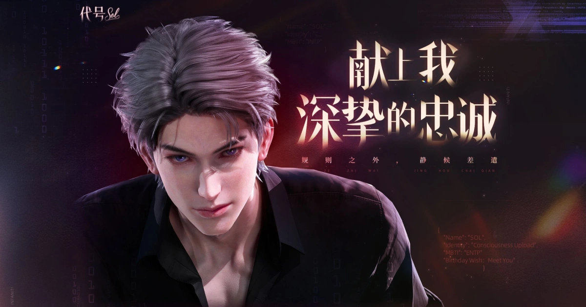 《無限谷》2 號園區推出首位 3D 管家型 AI 男友「Sol007」,並於 3 月 27 日與 4 月中旬開啟 iOS 與 Android 限量刪檔測試。