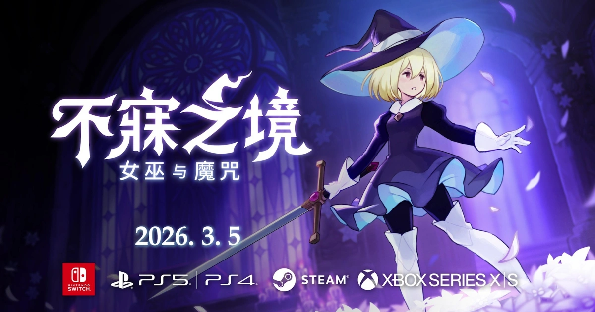 由 Frontside 180 Studio 開發、Pocketpair Publishing 發行的 2D 動作冒險遊戲《不寐之境:女巫與魔咒》已於 2026 年 3 月 4 日 正式推出。