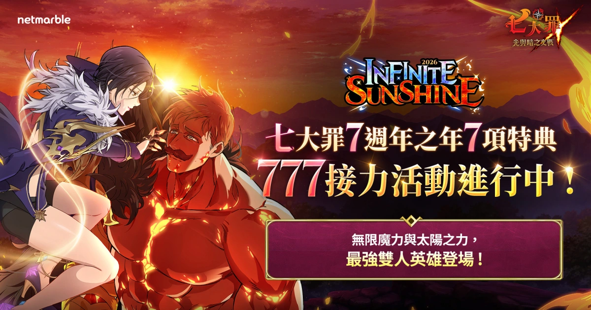 網石集團為《七大罪:光與暗之交戰》推出「2026 NEW YEAR FESTIVAL」,以 UR 雙人英雄、7 週年「777 接力活動」與大量鑽石回饋,結合新故事與召喚福利,揭開新年慶典。
