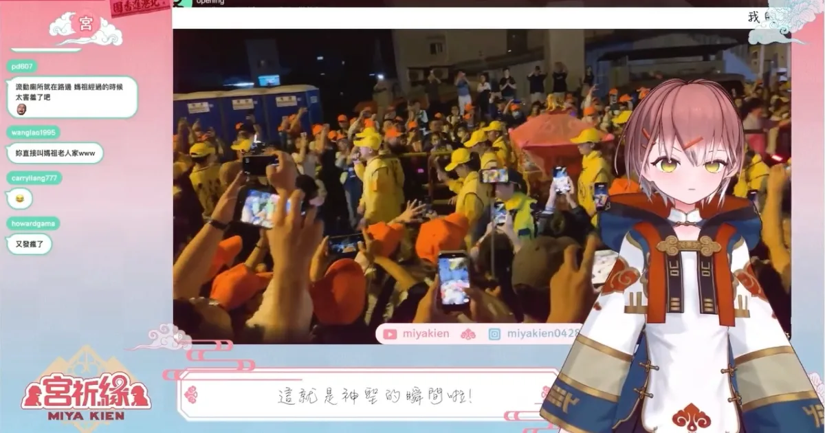 三月「全民瘋媽祖」熱潮升溫,白沙屯媽祖進香報名人數創新高。橘子集團旗下 AI 虛擬偶像「宮祈緣」首度以「數位香燈腳」參與 9 天 8 夜徒步進香,成為全台首例虛擬角色隨香案例。