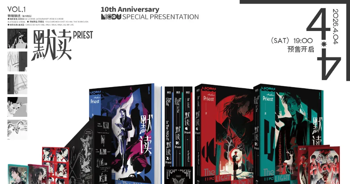 「那麼淺的胸口,那麼深的心。」中國耽美人氣作家 Priest 經典之作《默讀》迎來十週年,將於 4 月 4 日開啟紀念版預售,不僅收錄全新番外,更推出雙版本書盒與豐富特典,重溫文字裡的鮮紅與暗色。