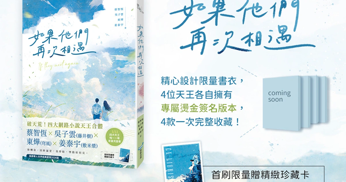 網路小說四大天王蔡智恆、吳子雲、東燁與姜泰宇首度合體,推出合輯《如果他們再次相遇》,於 2026 年舉辦限定簽書會與書展座談,喚起跨世代讀者共鳴。