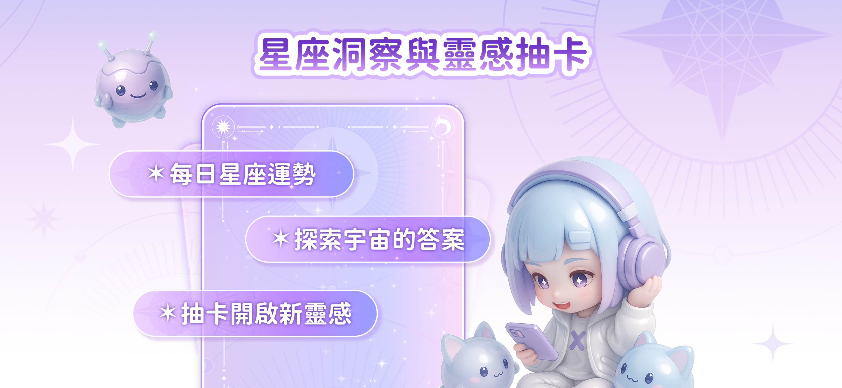 平台同時提供每日星座運勢與抽卡占卜,搭配專屬的「星塵系統」,讓每次互動與探索都累積成屬於妳的星光旅程。